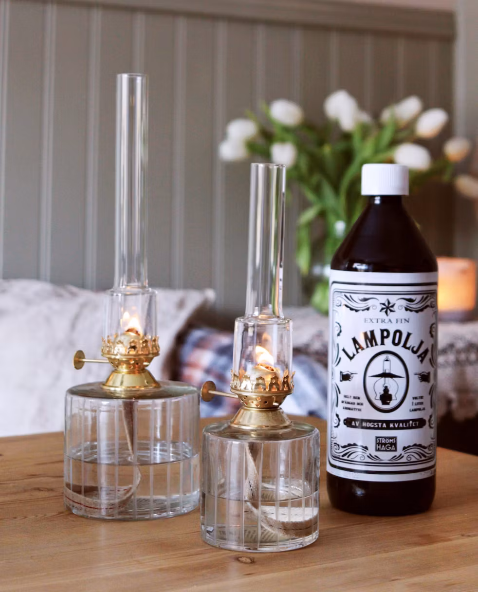 OBS! Kombinationen lampolja och glasfiberveke kan ge ökad risk för sot, vi rekommenderar därför lampor med bomullsveke.