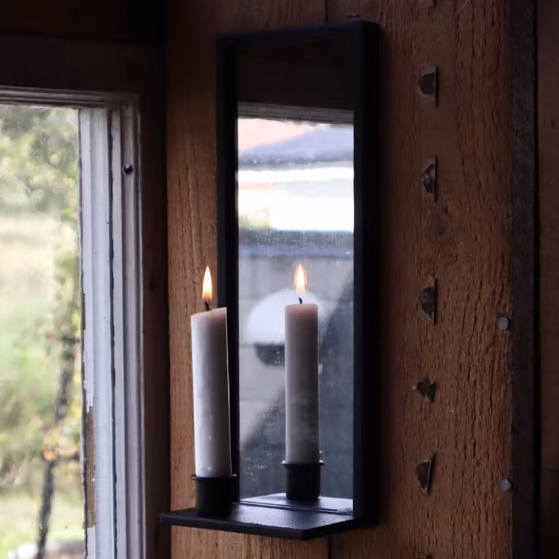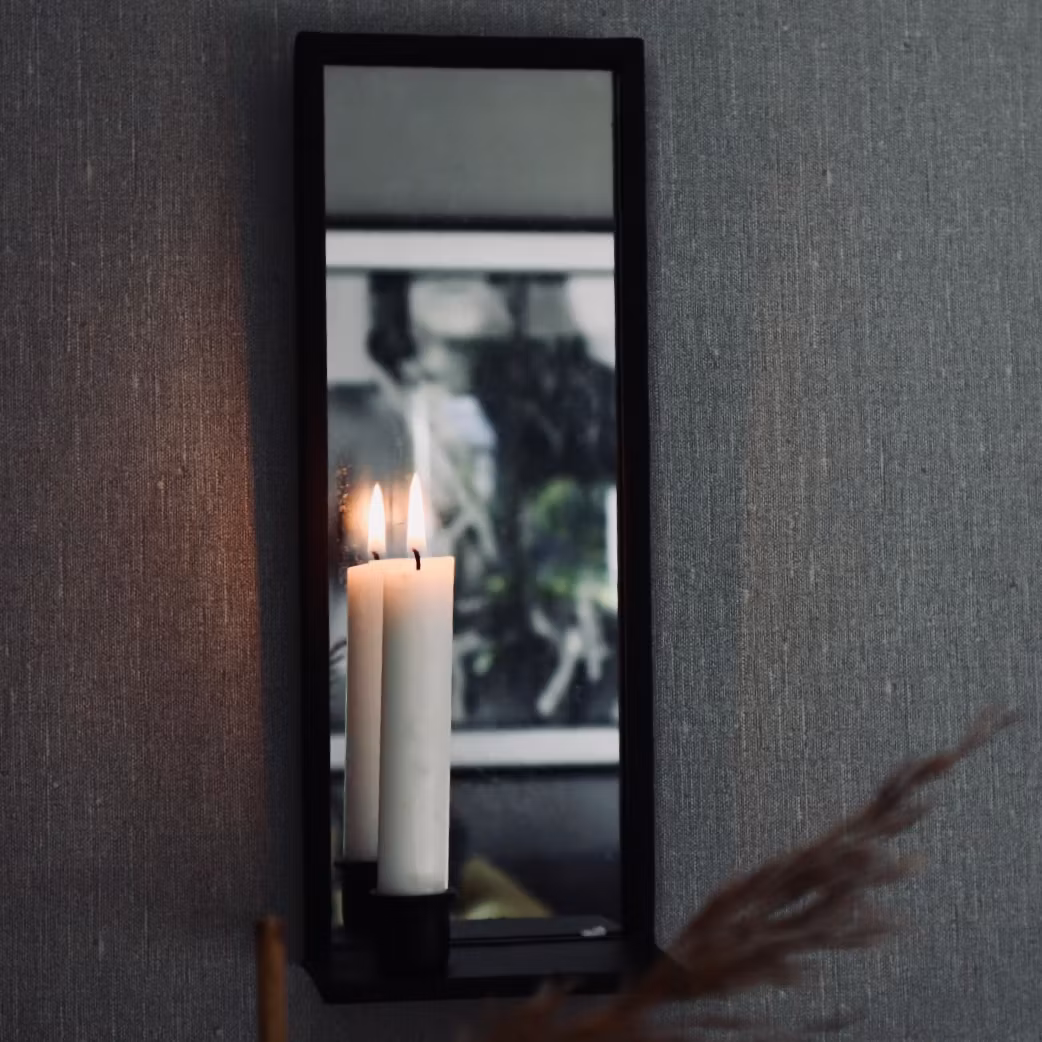 Du letar efter en perfekt spegel för att lysa upp ditt hem? Om det är så, är vår ljusspegel det perfekta valet för dig! Den är 12x7x32 cm stor och har en ljushållare för ett kronljus. Den här spegeln ger ett fantastiskt skimmer som kommer att skapa en vacker atmosfär i ditt hem. Spegeln kommer att göra ditt hem till ett lyxigare ställe och kommer att vara den perfekta accenten till dina inredningsval. Vår ljusspegel är den perfekta presenten till någon speciell eller för att bara förbättra din egen inredning.